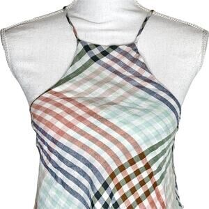 American Eagle plaid high neck frayed tank top women's XS
