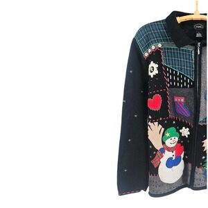 Designer Originals Studio Zip Up Knit Sweater Size 1X Holiday Ugly Sweater