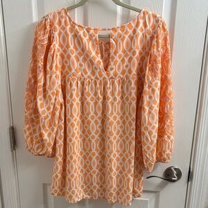 Women's Crown & Ivy Orange Patterned Top w/ Tassels Spring/Summer Size XL