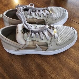 Chic Nike Women Court Vision Alta TXT sneakers in a cream and saturn gold finish. Adds an extra stylish and cute vibe to your casual everyday style. No box.