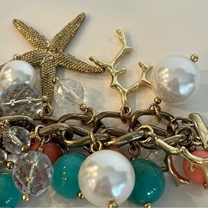 Sea Animal Charm Bracelet with Lucite, Coral, and Turquoise Beads