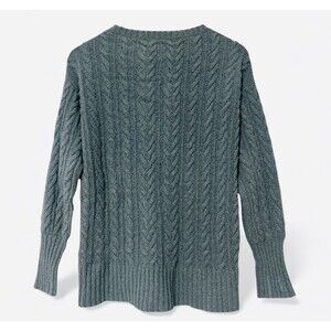 Peruvian Connection Cable Knit Sweater XS Pima Cotton V neck Pullover Blue Gray