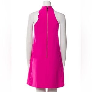 Ted Baker Fuchsia/Hot Pink Scalloped High Neck Scalloped Mini Dress Sz 2 EUC