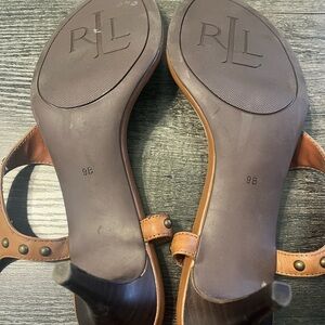 Lauren Ralph Lauren Brown Sandals with Studded Design With Kitten Heel Sz 9B