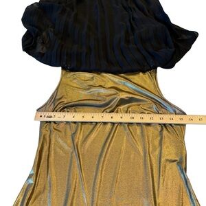 Aidan Mattox Black Sheer Pleated Gold Metallic Knee Length Cocktail Dress 2