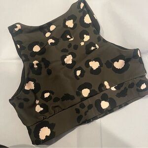 Revolve MinkPink Move green leopard print zipper front padded sports bra medium