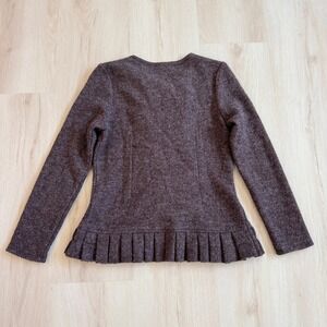 Marisa Christina Wool Boiled Knit Ruffle Trim Brown Cardigan Sweater Women S