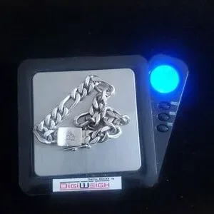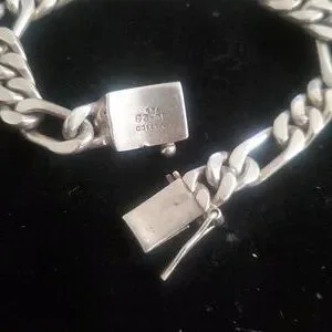 Men's Heavy 925 Sterling Figaro Link Chain Bracelet 48.9 grms