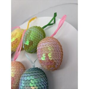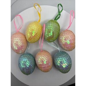 Lot 7 Sequin Easter Egg Ornaments Shiney Spring Decor Tree Ornaments Lightweight