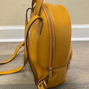 Chic saffron leather backpack by Michael Kors. Includes front zip pocket and adjustable straps.