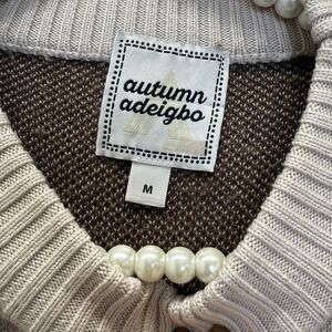 Brown printed knit (100 % Virgin Wool). Sweater. Long sleeves.