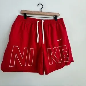 New Nike Woven Monogram Flow Shorts Men’s Large Spell Out Logo Red Y2K Sporty