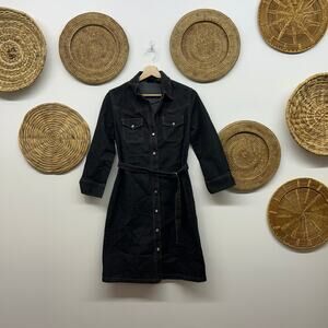 Vintage Y2K 2000s Emergency Exit Denim Mini Dress Small Button Up Belt Collared