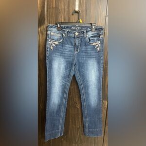 Grace in LA Women's Embroidered Embellished Boho Jeans Size 32