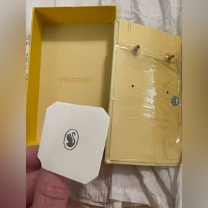Swarovski Signum Swan Crystal & Rose Gold Elegant Dangle Earrings NWT