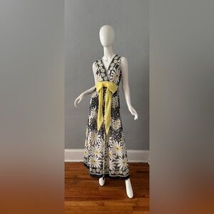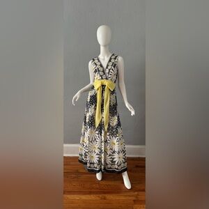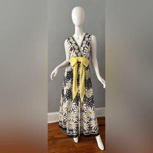 Vintage 60s 70s Mod Daisy Floral Hippie Maxi Party Dress XXS