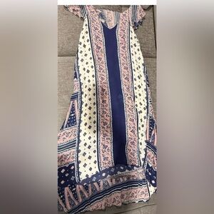 Stylish dress with pink and blue patterns. Soft and comfortable fabric. Ideal for casual outings.