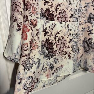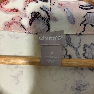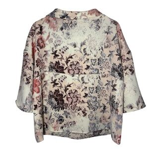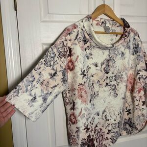 Chico's Blouse Top Sz 2 Large Floral Parisian Funnel Neck 3/4 Sleeve Career Boxy