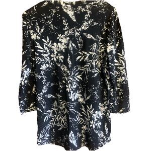 Relativity Henley Top Black White Floral Leaf Stretch Women's Size S Loose Fit