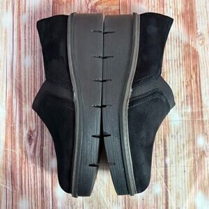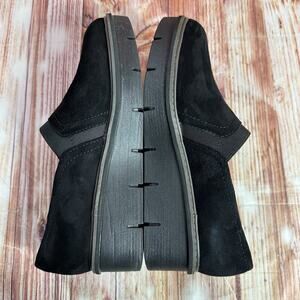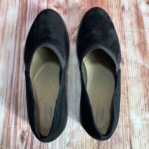 Clarks AIRABELL Womens Size 8 Black Suede Wedge Heel Slip On Loafers Shoes