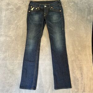 True Religion Women’s Painted Flap Pocket Western Low Rise Boot Cut Jeans 29