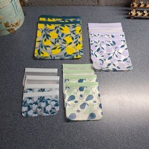 Food prep has neve been easier with these reusable Ello BPA free storage bags. These have tight leak proof zippers, eco-friendly, are dishwasher safe, FAB-U-LOUS for travel(Food won't spill in your bag), freezer safe, and let's face it the designs are easier for you to find in the fridge or advise your family; The lunch meats in the avocado bag! if you have anyone in your family with food allergies---these help identify what is safe to eat!!!! These keep items fresher longer & saves a lot of space in your fridge & freezer. NWOT