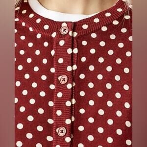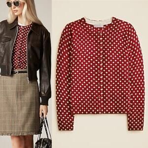 J. CREW Carolyn cardigan in polka-dot merino wool Burgundy Dot Classy Soft NWT S