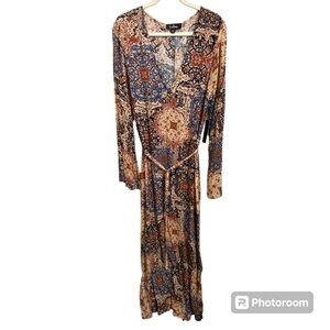NWT LULUS / Mosaic Marvel Rust Orange Print Long Sleeve Maxi Dress Size XL