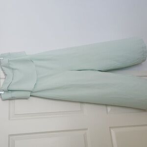 Light wear! A small mark under the flowy part of the top. You can't ever see it because it's covered, but i wanted to note it. A couple marks on the back of pant legs on the way bottom. It's not too noticeable. Pics included, but due to the imperfections, I have lowered the cost.