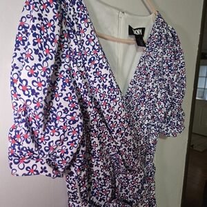 DKNY Floral Print Faux Wrap Iris Dress Multi Color Blue And Red Size 6