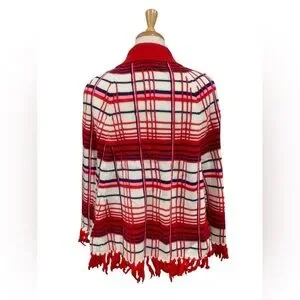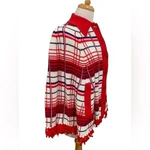 Vintage 70’s knit button up cape in multicolor plaid with fringe detail size S/M