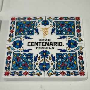 4 set gran Centenario tequila colorful tile coasters. Cork bottom.