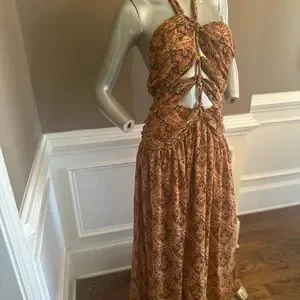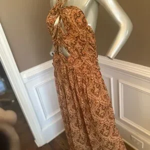 NWT FASHION NOVA Paisely Cut Out Maxi Dress Orange/Brown Halter Maxi Dress Sz XL