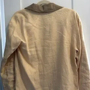 Chic Reformation trench coat in yellow with beige collar. Button closure and front pockets. Perfect for layering.