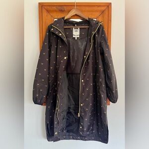 Part of the “Right as Rain” collection, jacket features charming gold bee pattern against a black background with gold accents.