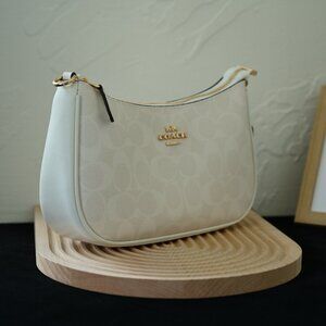 New With Tags, Coach Teri Shoulder Bag In Signature Canvas In Gold/White/Chalk NWT from smoke and pet free24*15*7.5cm environment.