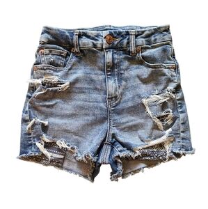 Women's AE Next Level Stretch Curvy Hi Rise Shortie Size 0 Distressed Shorts!