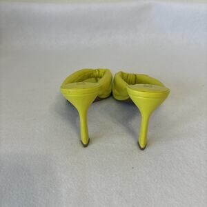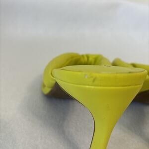 Features: Lime Faux Leather, Open Toe, Square Toe, High Heel, Thong Style