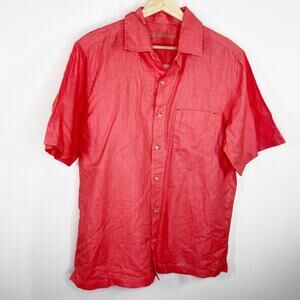 Caribbean Salmon Pink Short Sleeve Button Up Shirt Men's Size Medium M