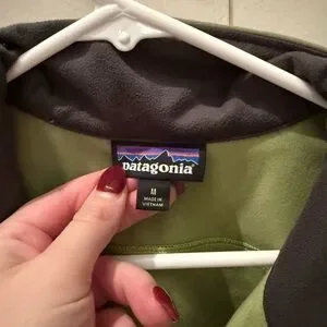 Experience comfort and style with this Patagonia jacket. Features a sleek design with multiple zippered pockets. Ideal for outdoor adventures.