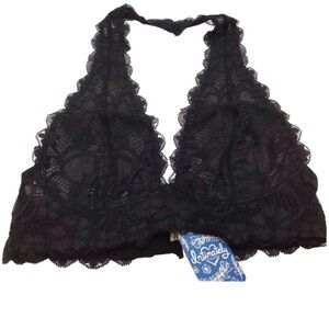 Free People Black Galloon Lace Halter Bra (NWT) (Size: XS)