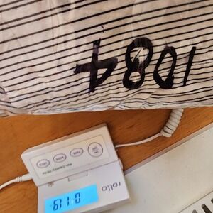 Japanese Crane and Flower Print Kimono Robe. This traditional style garment features a flowing silhouette and an eye-catching navy blue pattern of cranes and cherry blossoms against a crisp white striped background. The open front and wide sleeves offer a relaxed and comfortable fit, perfect for lounging at home or as a stylish layering piece for a casual outing.