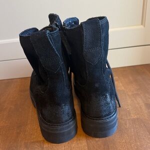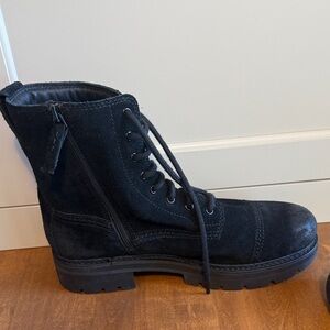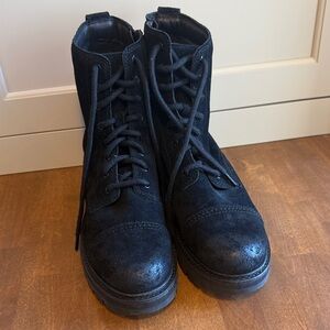Elegant black suede boots with sturdy lace-up design. Ideal for versatile wear.