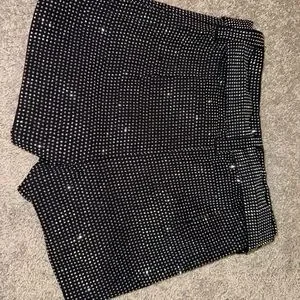Chic black shorts with silver studs. Features a stylish belt and buckle. Perfect for a night out. Wore once to a concert and there is a tiny bead missing, I have a pic of it but it’s really not noticeable:)