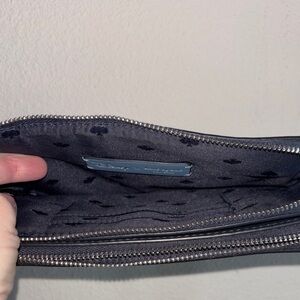 This beautiful crossbody handbag by Kate Spade is a must-have for any Disney fan. The navy polka dot pattern and heart character design add a touch of whimsy to any outfit. The bag measures 7.6 inches in width, 4.8 inches in height, and 1.5 inches in depth, making it a large size perfect for everyday use. The zipper closure and crossbody strap handle style provide added security and convenience.