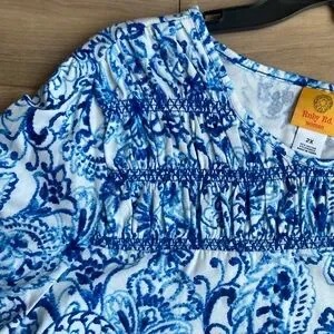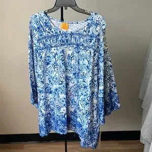 3/$45 Ruby Rd. Floral print scallop embroidered embellishment boho top blouse 2X