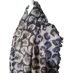 Unbranded Textured With Fringe Leopard Print Oversized Blanket Scarf