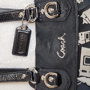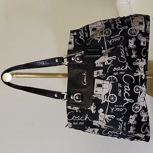 Coach Horse Carriage Ashley Black & Tan Fabric Leather Trim Shoulder Bag