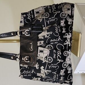 Coach Y2K Horse Carriage Ashley Black Fabric Leather Trim Shoulder/ Tote Bag