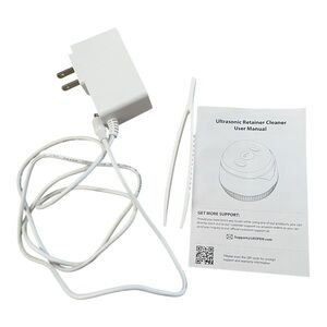 Ultrasonic retainer cleaner with UV sterilization for deep cleaning. Compact and efficient design.